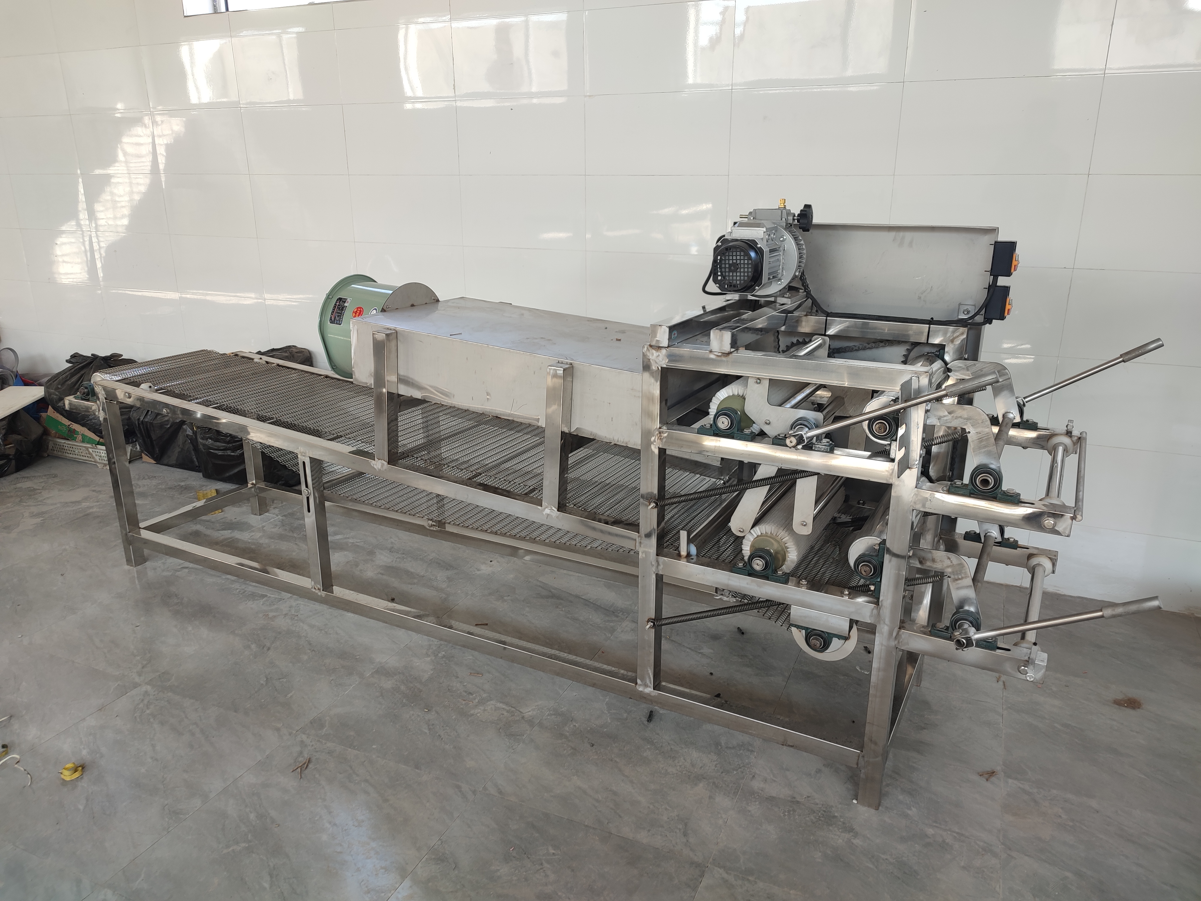 豆腐皮雙剝皮機(jī)七層九米攤晾線長(zhǎng)9米,可選雙剝皮機(jī)五層13米豆腐皮攤晾線,根據(jù)場(chǎng)地來(lái)選擇攤晾線